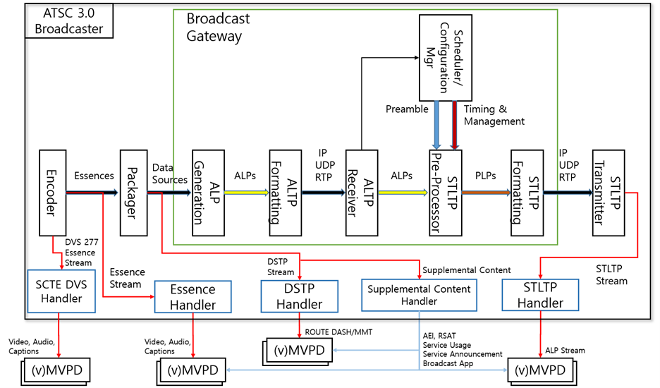 For direct feeds from a broadcaster to a MVPD, the document describes several points of interface with MVPDs, as shown in the figure below excerpted from the document. It also describes interfaces for over-the-air delivery of ATSC 3.0 signals to MVPDs.
