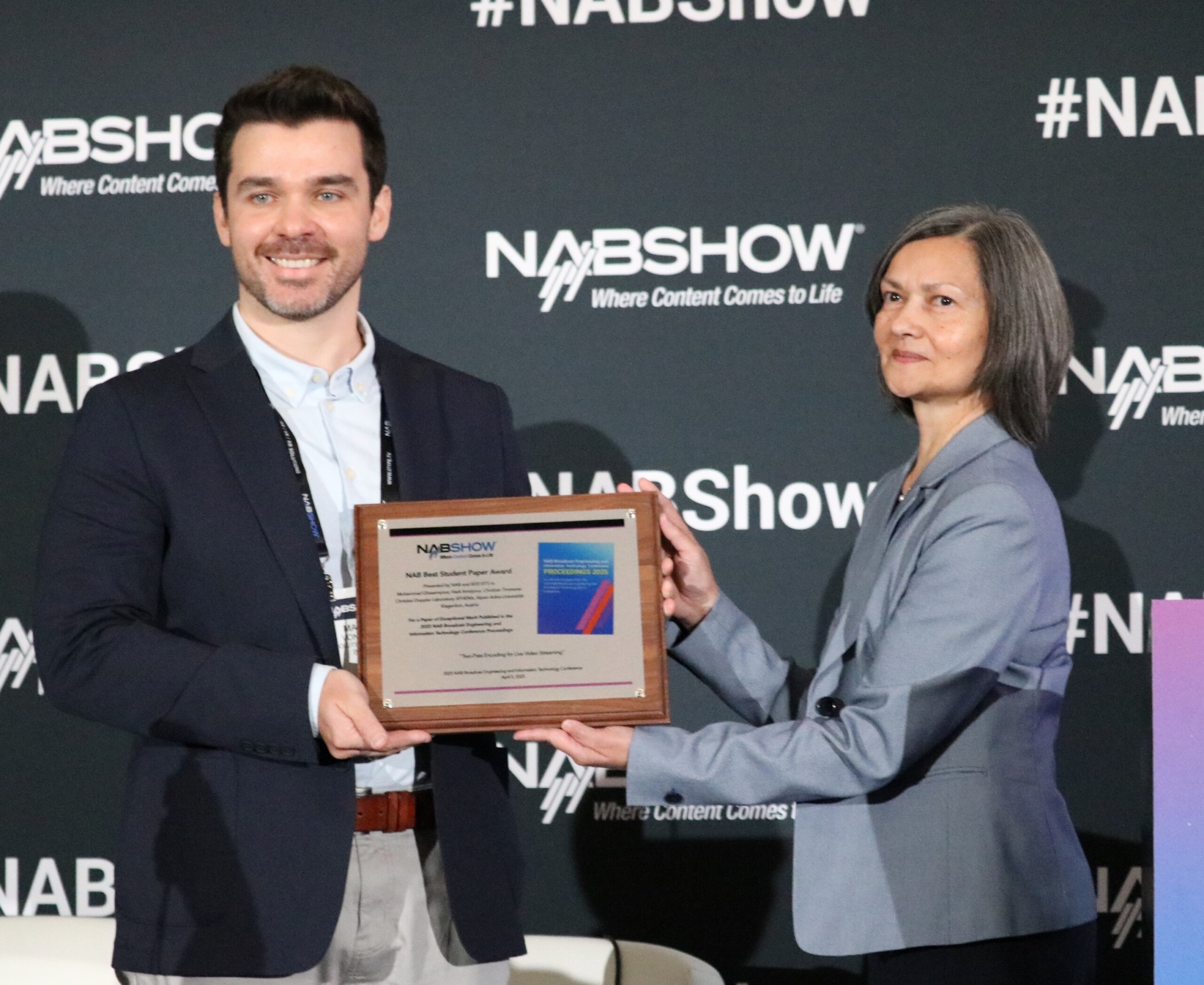 The NAB Best Student Paper Award at the 2025 NAB Show was presented to Mohammad Ghasempour, a Ph.D. student and research assistant at Alpen-Adria-Universität, Klagenfurt, Austria for the paper titled, “Two-Pass Encoding for Live Video Streaming.” The paper’s co-authors were Hadi Amirpour and Christian Timmerer, also from Alpen-Adria-Universität.